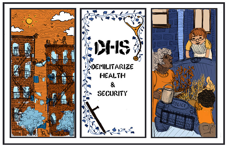 2015 - triptych poster for the War Resisters League, DHS campaign